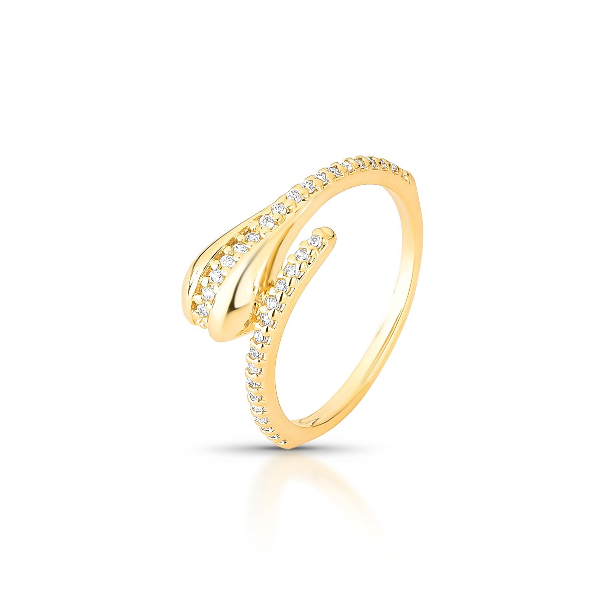 Anel Aberto Com Zircônias E Design Fluido Folheado A Ouro 18k