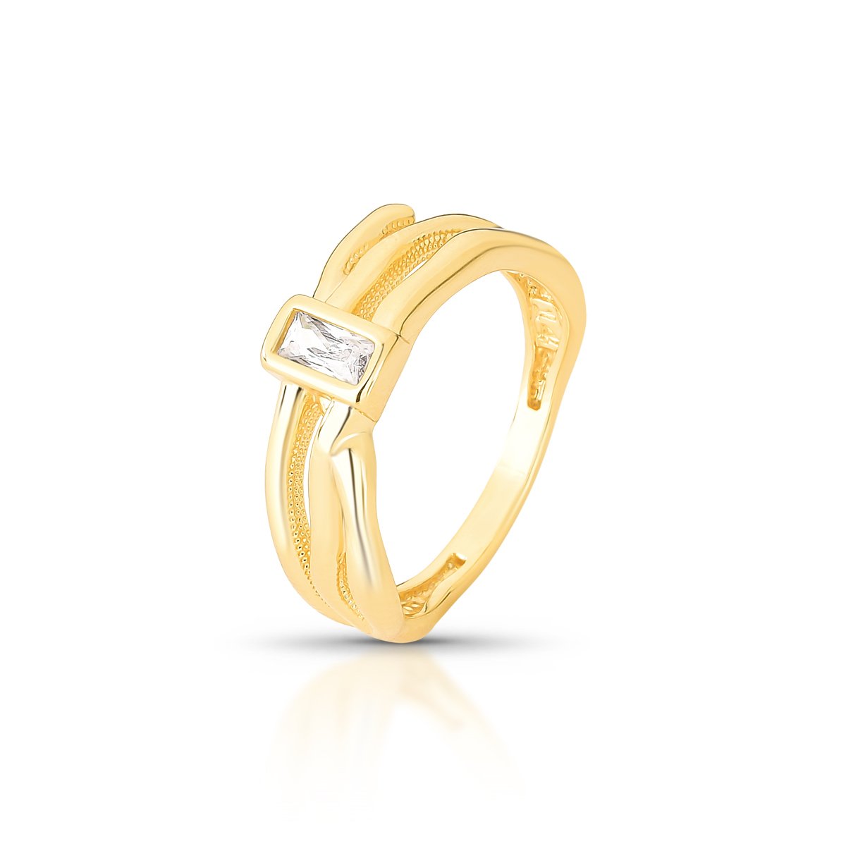 Anel Entrelaçado Com Zircônia Retangular Folheado A Ouro 18k