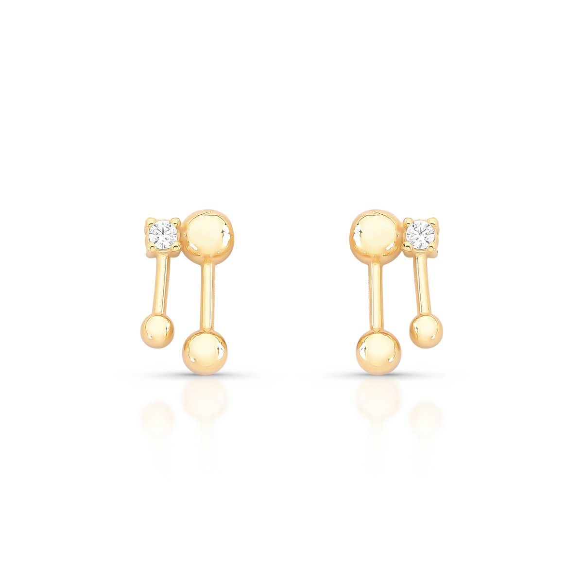 Brinco assimétrico folheado a ouro 18k com zircônia cúbica e esferas polidas. Design leve e moderno para quem busca autenticidade e sofisticação no dia a dia.Características: