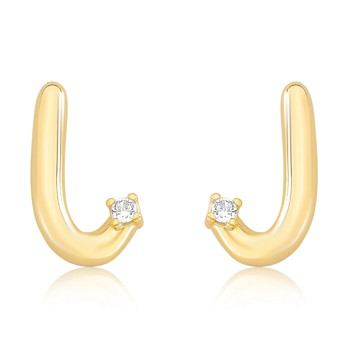 Brinco folheado a ouro 18k com formato curvado e detalhe de zircônia cúbica na base.Uma peça versátil e elegante para iluminar seu look com delicadeza.