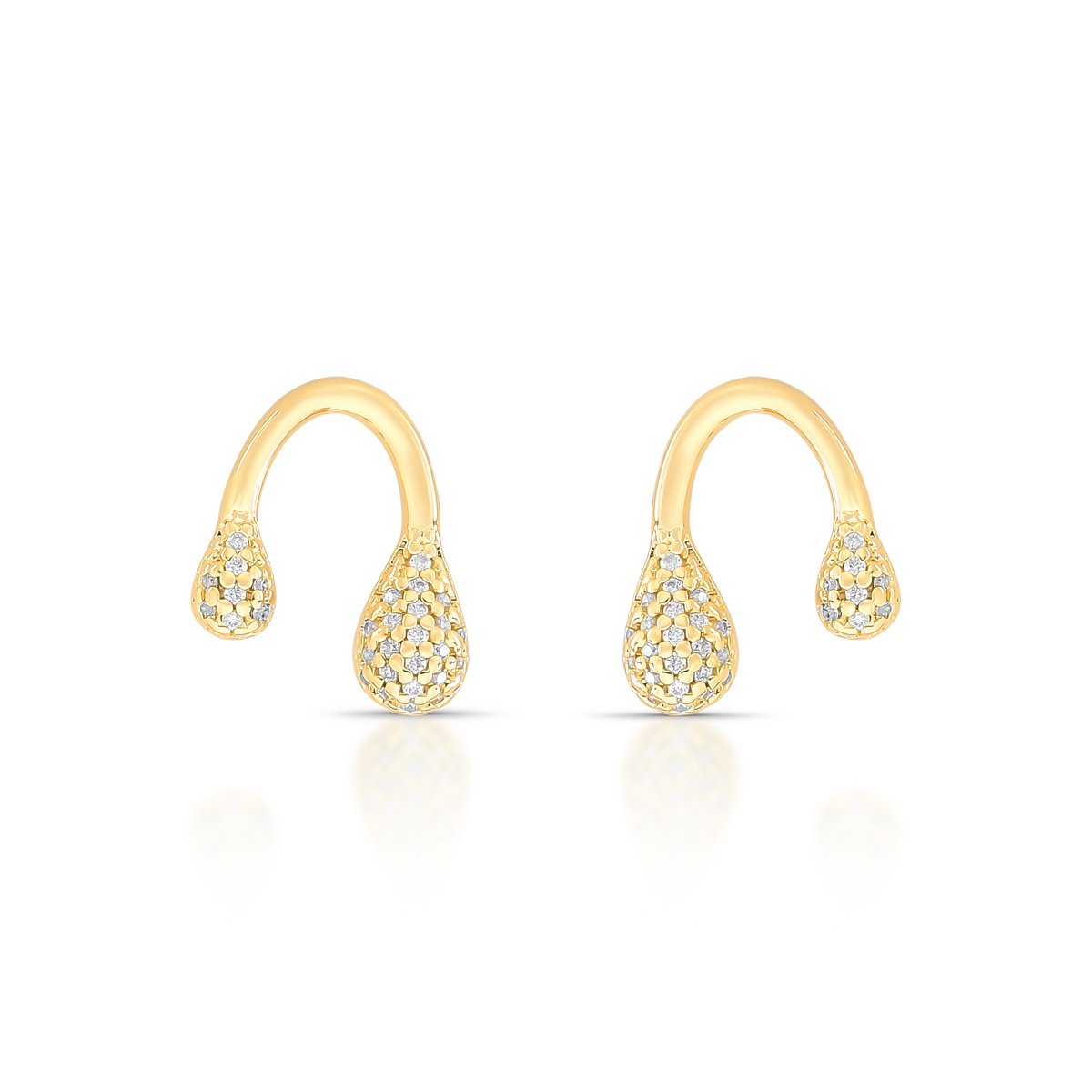 Brinco curvo folheado a ouro 18k com ponta em formato de gota cravejada com zircônias cúbicas.Estilo moderno e marcante para quem ama acessórios únicos e refinados.