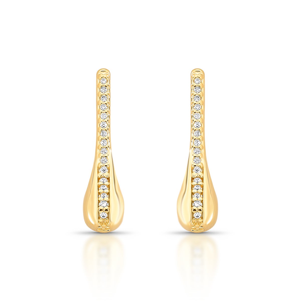 Gota alongada com fileira de zircônias, este brinco folheado a ouro 18k oferece um visual sofisticado e fluido.Ideal para iluminar o look com elegância e leveza.