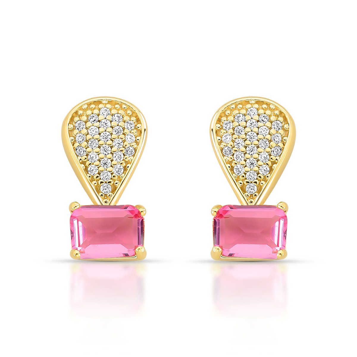 Brinco elegante com base em gota cravejada de zircônias e destaque para zircônia retangular colorida ao centro. Folheado a ouro 18k, é a escolha ideal para compor looks sofisticados e atemporais.Características:
