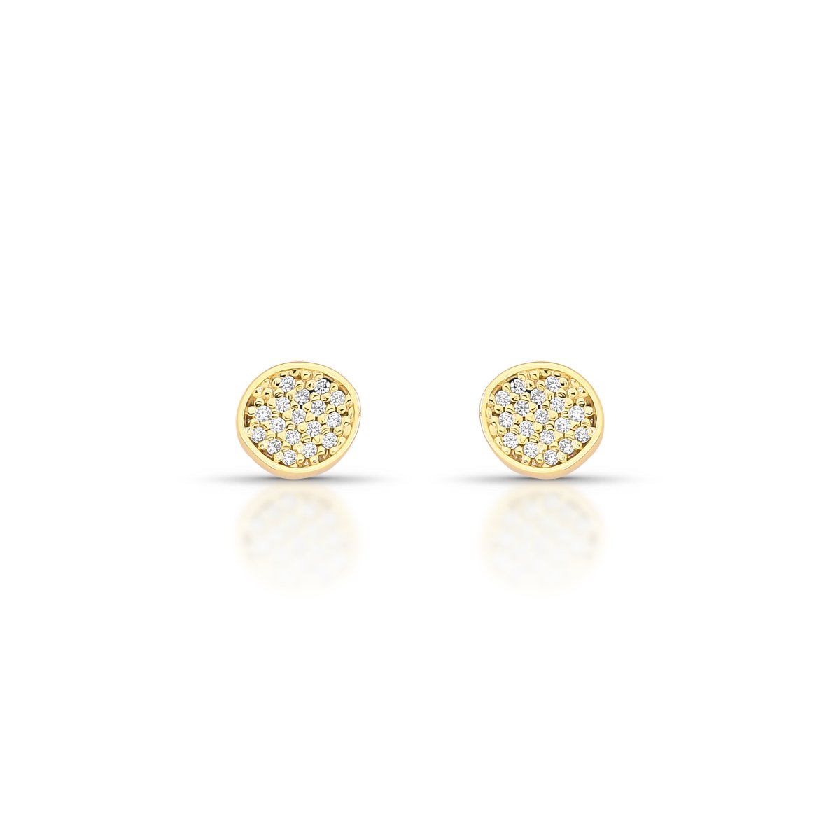 Folheado a ouro 18k, este brinco redondo possui superfície totalmente cravejada com zircônias cúbicas.Um ponto de brilho intenso e elegante para iluminar qualquer produção com sofisticação.