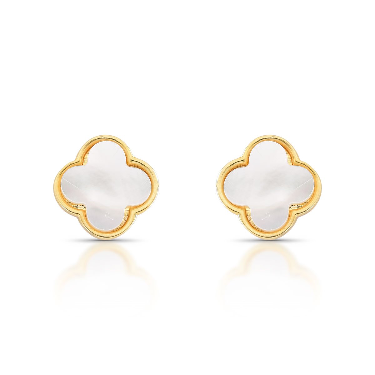Brinco pequeno em formato de trevo, com detalhe em madreperola e folheado a ouro 18k.