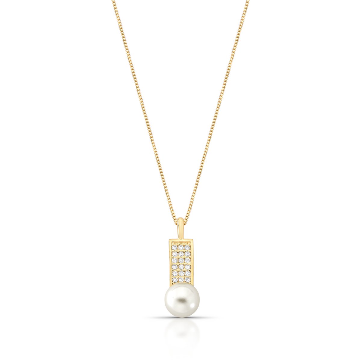 Colar Retangular Com Pérola E Zirconias Folheado A Ouro 18k