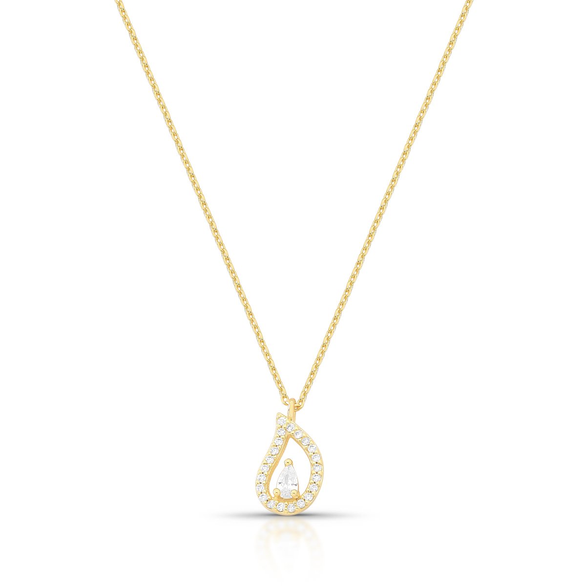 Colar com pingente em formato de gota vazada, folheado a ouro 18k, contornado por zircônias cúbicas delicadamente cravejadas e com zircônia gota colorida central.Uma semijoia sofisticada, feminina e atemporal, perfeita para eventos especiais ou para iluminar o look com elegância e brilho refinado.